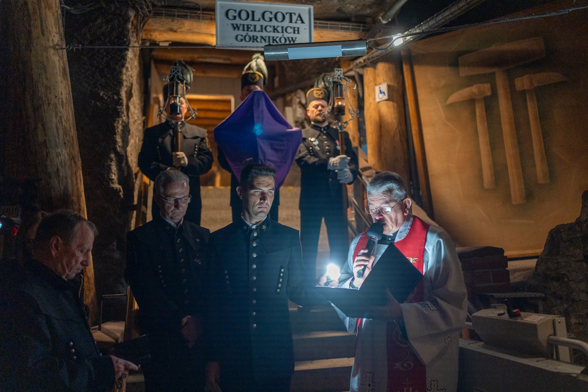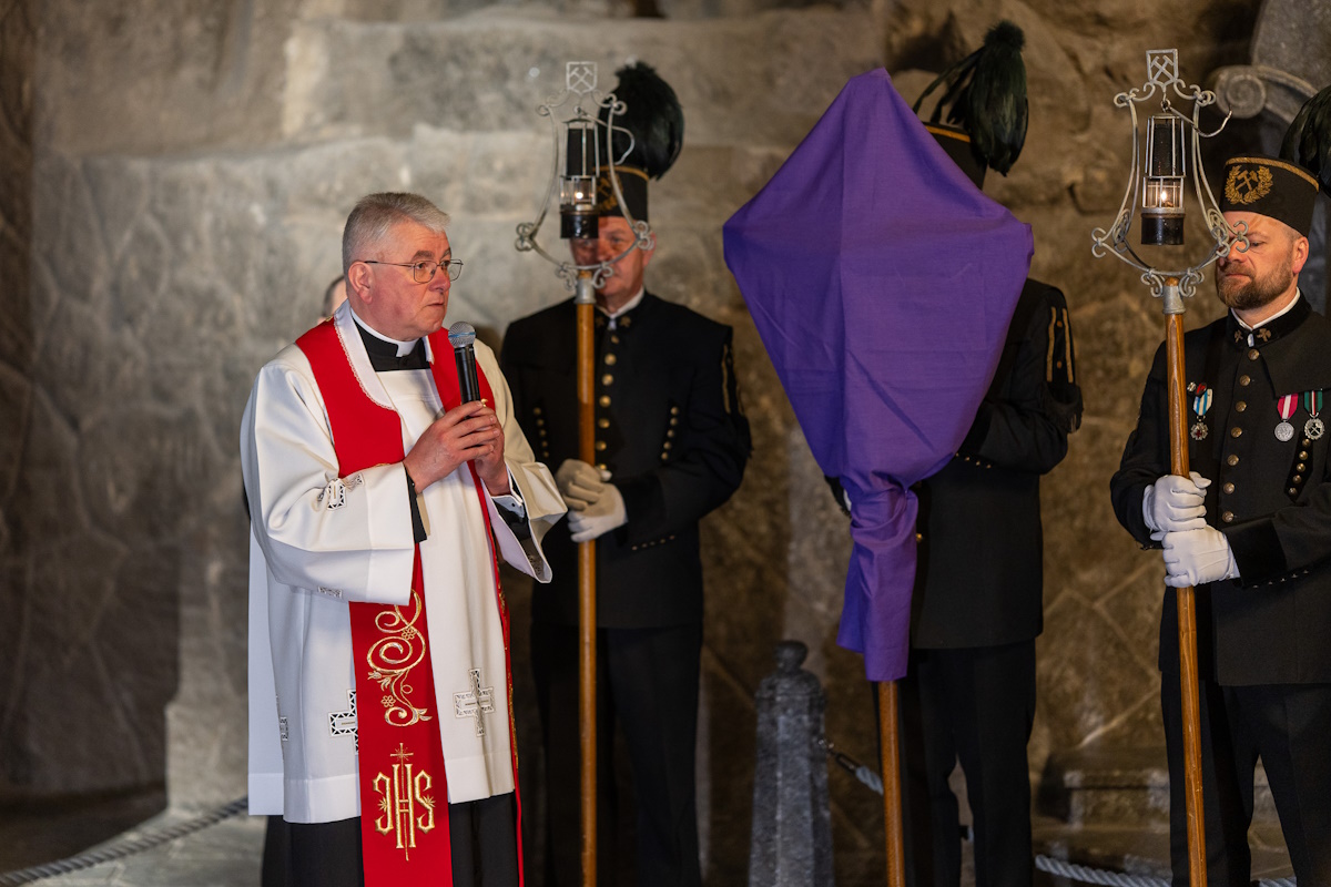 Wielkopiątkowej modlitwie przewodniczył ksiądz Wojciech Olszowski, proboszcz parafii św. Klemensa w Wieliczce. Podkreślił wyjątkowość podziemnej Via Crucis, która łączy górnicze wiarę i pracę.