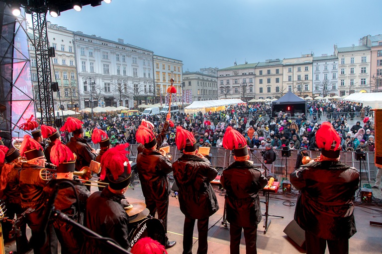 Muzycy dwukrotnie rozgrzewali serca krakowian – o godz. 13:00 przy pomniku Adama Mickiewicza oraz o 16:00 przy ratuszu. Ze sceny głównej w imieniu kopalni głos zabrała także Prezes Zarządu Kopalni Soli „Wieliczka” Turystyka Barbara Zięba-Godula.
